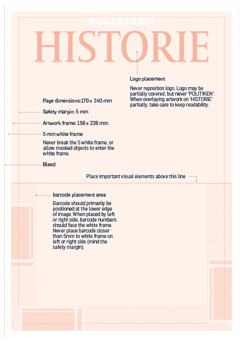Layout specification for Politiken Historie cover, keeping strict visual consistency, print accuracy, and brand integrity across issues