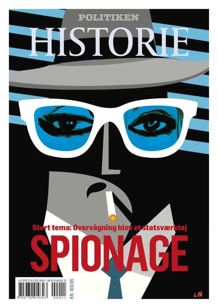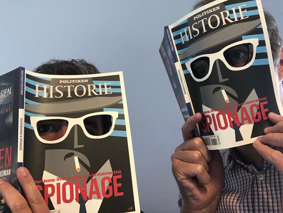 Cover design for Politiken Historie’s ‘Spy theme’ incorporated die‑cut spy holes, revealing an undercover agent illustration on page 3, creating a playful, interactive experience aligned with the issue’s theme.